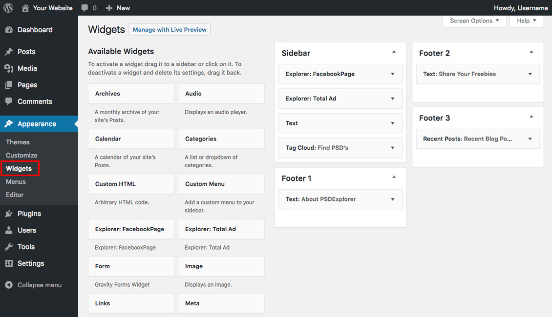 WordPress uses widgets to display content in the sidebar. To change widgets, open the dashboard and go to Appearance > Widgets. From here, you can add, remove, or reorder widgets by dragging and dropping, as well as customize the appearance of the sidebar using individual widget options.